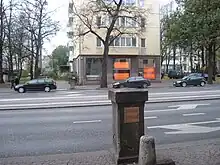 On the right side along the straight stretch of Mannerheimintie north (rather: northwest) from Töölön tulli features 🌍 eleven residential buildings pretty similar to each other, but all tilted 45° away from the street and as such pointing north-south. And behind these buildings there are paths leading up to the urban forests of the 🌍 Keskuspuisto (the Central Park) as mentioned before. Lehtikuusentie leads up to 🌍 Helsinki's Rudolf Steiner school (a Waldorf education institution). By the way, from Töölöntulli onwards, most streets are named "road" (tie) rather than "street" (katu) - Mannerheimintie is exceptional as it is a "road" all the way to central Helsinki.