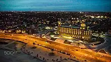 Making a twist to the right, Rambla Franklin D. Roosevelt separates the port from Montevideo's secondary bus station, 🌍 Terminal Río Branco also known as Terminal Baltasar Brum. Behind the bus station you can see the residential and office buildings of downtown Montevideo, the amount of graffiti has decreased. To the right, the 🌍 port with it's lower buildings, sea containers and trucks make up a more airy appearance than the industrial plants earlier along the road. You may even catch a glimpse of the sea again. If you are walking on the port side of the street - starboard actually - watch out for the truck traffic coming and going through the gates. In the horizon you can see the tower of the Art Deco Aduana (customs) building. Then there will be the 🌍 Ciudadela street to the left going to Plaza Independencia, the main square and heart of Montevideo and further to meet up with the Rambla on the opposite side of the old town.