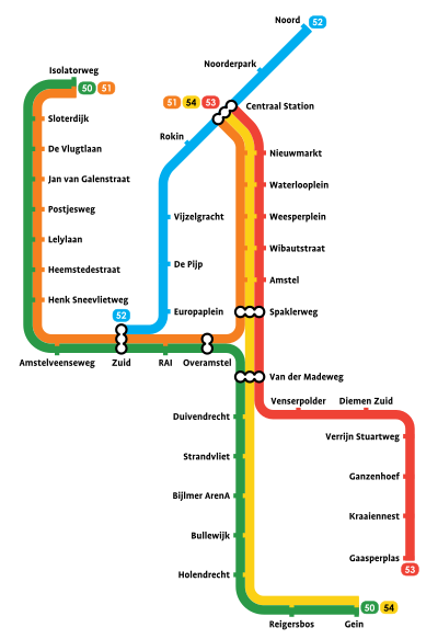 Public transport within the city is operated by the GVB. The tram is the main form of public transport and there is a metro and dozens of bus routes. Most routes operate from 06:00 (06:30 Saturdays and 07:45 Sundays) until around midnight. There are a few overnight bus routes as well. Regional buses, and some suburban buses, are operated by Connexxion and EBS.