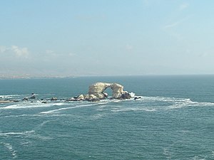 - La Portada – An impressive yellowish rock gate stands in the sea at along a picturesque and wild cliff coast.