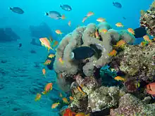Have a look at an online map south of Aqaba, such as in the Tala Bay article; many dive centers can be found there, and diving is extremely popular. A two-dive single-day package typically costs around 50 JD, but booking multi-dive packages in advance can save a lot. Almost all dives are shore based. A small number of sites are better accessed by boat, though the journey is never more than 45 min and is typically in the 20-min range. Though dive packages tend to be more expensive than nearby Egypt, the quality of operators is much more consistent, and the fact virtually all dives are done as shore dives save both money and time with day-boats. Diving here is also good for beginners, as there are no tides, and currents and swells this far up the gulf of Aqaba are minimal, which also means diving any given site is all but guaranteed, regardless of what the weather is up to.