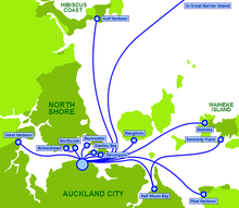 Ferry services operate from the CBD to other points on the mainland and to Hauraki Gulf islands.