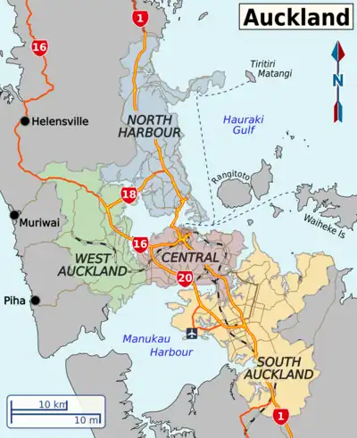 For information on the smaller towns, settlements and islands in the wider area around the city, see the Auckland Region article.