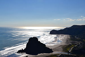 - West coast beaches are on the Tasman Sea, and have large expanses of sand and rolling surf. They have unpredictable rips so you should swim only between the lifeguards' flags, which cover select areas of the most popular beaches. They are about a 40-min drive from the city centre (via West Auckland) and the roads are narrow and winding. You'll need your own transport. There's little shade available, and few shops. The sand on these beaches is dark in colour due to high iron content from its volcanic origins. There are several smaller beaches accessible only by foot. The major beaches from south to north are: