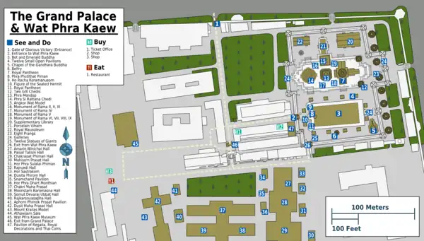 🌍 Wat Phra Kaew, formally Wat Phra Si Rattana Satsadaram (วัดพระศรีรัตนศาสดารามหรือวัดพระแก้ว), is the most sacred Buddhist temple of Thailand. While construction of the temple was completed in 1784, it has a sanitised appearance as if it was built only yesterday. The temple houses a diminutive jade statue, the Emerald Buddha (พระแก้วมรกต), of uncertain but long provenance and revered as the symbol of the Thai state. According to the legend, it was created in India in 43 BC after which it was taken to Sri Lanka, Cambodia and eventually Siam. Art historians, however, describe the statue as belonging to the Chiang Saen style of the 15th century, concluding it must have come from Lanna (current Northern Thailand). It was taken to Luang Prabang in the current state of Laos in 1552, and moved to Vientiane twelve years later. In 1779, in the Thonburi Period, General Chao Phraya Chakri captured Vientiane and returned the Emerald Buddha to Siam. When he was crowned as King Rama I, he moved the Emerald Buddha to its current location in Rattanakosin. Visitors line up around the building for a chance to walk by the Emerald Buddha with offerings of lilies and incense. You must take off your shoes before entering the bot, and taking pictures inside is not allowed; violators will have their photo equipment confiscated. Also show respect by sitting with your feet pointing away from the Buddha. The Buddha's clothing is changed three times a year depending on the season; you can see the other outfits in the Pavilion of Regalia, Royal Decorations and Thai Coins after the tour.
