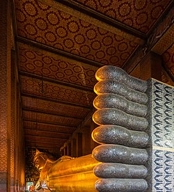 🌍 Wat Pho, popularly known as the Temple of the Reclining Buddha, is the largest temple of Bangkok, and probably the oldest too, as it pre-dates the founding of the capital by about 200 years. Most foreign travellers come for the much-needed picture of themselves with the enormous Reclining Buddha (พระพุทธไสยาสน์ Phra Buddhasaiyas) - the largest reclining Buddha image in Thailand and possibly the largest in the world. The list of records doesn't end there; Wat Pho is home to more than one thousand Buddha images, more than any other temple in Thailand. The temple as it appears now dates from the late 18th century, right after the founding of Rattanakosin, when King Rama I almost completely rebuilt the complex. He renamed the temple Wat Phra Chetuphon (วัดพระเชตุพน), as Thais still call it today, but the new name never really caught on in the West. Another major revamp took place in 1832 when, in the reign of King Rama III, new chapels were added and walls and pillars were decorated with inscriptions about traditional medicine. Wat Pho is often cited as Thailand's first university as, even before the temple's founding, the site was a centre of education for traditional Thai medicine.