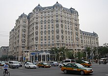 - 🌍 Grand Hotel Beijing (北京贵宾楼饭店; Běijīng Guìbīnlóu Fàndiàn), 35 East Chang'an Street (东长安街35号; Dōngchángānjiē) (two blocks E of Tiananmen Square), ☏ +86 10 6513 7788, fax: +86 10 6513 0049. Five-star hotel in a traditional building in a small street overlooking the Forbidden City. Rooms with free internet except for the cheapest ones. The rooms are 32-66 m² except for the very most expensive, which is more than 100 m². Business center, gift shop, ticket office, fitness, pool and sauna available. Chinese and Western restaurants as well as coffee shop, bar and room service. Listed rates for doubles ¥3,450-14,950, discounted rates ¥765-10,500, breakfast ¥184.