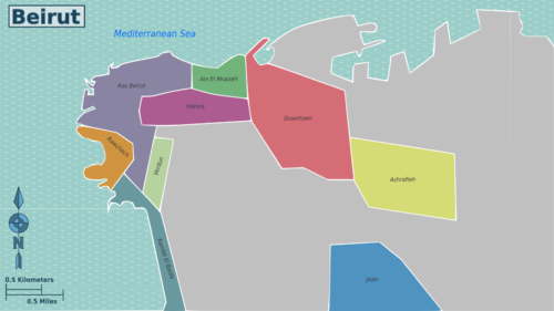 Downtown In the heart of the city beside the Beirut port and Beirut marina; includes many cafés, restaurants, and places to shop. Also home to many historical sites. It is very touristy, and not as authentic as other districts. |
