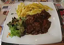 Konijn met pruimen: rabbit cooked in beer and dried plums.
