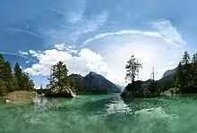 - 🌍 Königssee. This emerald-green lake is surrounded by steep walls of rock, with the 1800-metre east wall of the Watzmann towering above its west shore. Around eight kilometres long and over a kilometre across at its widest point, and with a depth of up to 190 metres, the lake occupies the whole valley between the Watzmann in the west and the Jenner and Gotzenberg in the east. This jewel of the Bavarian Alps is a haven of peace.