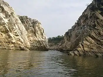 - Marble Rocks. The perpendicular magnesium limestone rocks fringe the crystal clear placid waters of the Narmada providing a fascinating site. Boating facilities are available between November-May. Boating on a moonlit night, when the whole stretch of water is transformed into a sheet of liquid silver. In the narrow channel of the mighty river, there is a place approached so closely from the opposite banks that the local people have aptly named it the "Monkey's Leap".