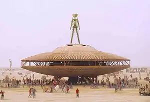 - 🌍 The Temple. Somewhat past the Man on the main road from Center Camp. Since 2001, artist David Best has created monumental structures on the Playa in the form of 3- or 4-story temples. Although the design, name, and nominal purpose changes each year, the Temple is usually dedicated to lost friends and relatives. The Temple is a beautiful and meditative place to spend a few minutes during the day or night.