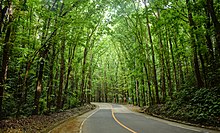 The Bohol Mahogany Forest, often called the Bilar Man-Made Forest, is a man-made forest consisting of mahogany trees. The forest was a misguided, but well-intentioned, project to reforest the road between Loboc and Bilar. Mahogany trees are not native to Bohol, so as a result, much of the native wildlife (including all birds) cannot viably inhabitat the man-made forest, and many non-native species (such as millipedes) thrive instead. The forest is notably cooler due to the shade. The Department of Environment and Natural Resources is working to correct this ecological imbalance by planting native trees in the understory of the forest to gradually replace the mahogany monoculture.