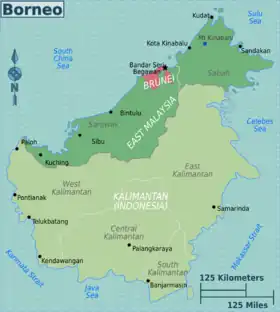 East Malaysia (Sabah and Sarawak) the Malaysian part, occupying the northern third of the island |