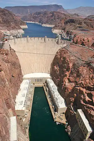 - 🌍 Hoover Dam, Nevada Route 172 (east of Boulder City), ☏ +1 702-494-2517, toll-free: +1-866-730-9097, [email protected]. 5AM-9PM (dam accessible), 9AM-5PM daily (visitor center); 8AM-5:15PM (parking garage). Straddling the Colorado River between Nevada and Arizona, this was the world's largest dam when completed in 1935, and instrumental in generating power and providing irrigation via Lake Mead, which was created behind the dam. Even though through traffic no longer crosses the dam, instead crossing a bridge just downstream that opened in 2010, tourist traffic (and occasional employee traffic) to the dam can still be quite bad so plan your trip with extra travel time. $10 visitor center, with powerplant tour $15, in-depth tour $30, parking garage $10 at the visitor center & free parking on the Arizona side.