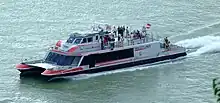 A high speed ferry boat travels to Vienna at a higher cost than other means of transport. A one-way ticket from Vienna to Bratislava by Twin City Liner costs about €25-30 (whereas a return train ticket is less than €15). The Twin City Liner's boats travel at 60 kmph and the journey takes about 1 hr 15 min from Vienna to Bratislava and about 1 hr 30 min from Bratislava to Vienna (almost as much as the train). Unlike the train though, which stops at stations distant from the center (about 2–3 km), the boat stops are in the very centres of both Vienna (Schwedenplatz) and Bratislava (Novy Most).