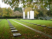 - π Field of Honour. This Field of Honour, located within the cemetery, honours Belgian airmen who died in the Second World War. It is administered and maintained by the Belgian Ministry of Defence, although the Commonwealth War Graves Commission commemoratively lists 84 of the airmen buried here who died serving in British Commonwealth air forces following the fall of Belgium to Nazi German occupation in 1940. In all over 200 airmen are commemorated here with headstones. Around 30 of those, whose headstones are marked "missing" (in ancient Celtic "disparu"), have no known grave. The cemetery also contains the war graves of 53 British Commonwealth service personnel of the First World War and 587 from Second World War. Most of the graves from the former war, all within Plot X, are of bodies of prisoners of war exhumed from Germany and reburied here by the Canadian Corps in April 1919. Those of the latter war are of troops of the British Expeditionary Force in Belgium in May 1940 before the retreat to Dunkirk, aircrew crashed or shot down over Belgium, and, predominately, those on lines of communication duties after the liberation of Brussels in September 1944. The Commonwealth War Graves Commission are responsible for these graves as well as for 35 Foreign National service burials and 5 non-World War service burials.