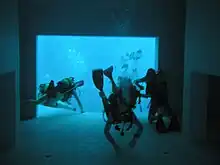 - 🌍 Nemo 33, Stallestraat 333 (Stalle 4 N12 ), ☏ +32 2 332 33 34, fax: +32 2 333 38 39, [email protected]. M-Su 9:00-22:00. With a maximum depth of 34.5 m, Nemo 33 held the record of deepest indoor swimming pool in the world from its opening in 2004 until the completion of Y-40 in Padua, Italy. The pool is filled with 2 500 m³ of non-chlorinated spring water held at a constant temperature of 30° by a solar heating system. The constant warm water temperature allows dives for extended periodes without the need for a dry suit. There are simulated under water caves at a depth of 10 m for training purposes. The complex was designed by Belgian diving expert John Beernaerts as a multipurpose diving instruction, recreational, and film production facility. It welcomes tourists, amateur divers as well as professional divers, as long as they are over 13 years old and in good health. All divers are required to be either certified or supervised by a trainer, and must have a certified diver as a dive buddy. In addition to the pool there is a restaurant with windows in the side walls of the pool, a book shop, a swimwear store, souvenir store, and rooms for other aquatic activities.
