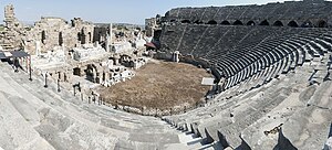 - 🌍 Side (Pamphylia). Possessing a good harbour for small-craft boats, it was one of the most important places in Pamphylia and one of the most important trade centres in the region. Arab fleets, nevertheless, raided and burned Side during the 7th century, contributing to its decline. The combination of earthquakes, Christian zealots and Arab raids, left the site abandoned by the 10th century, its citizens having emigrated to nearby Attalia. The great ruins are among the most notable in Asia Minor and include the largest theatre in Pamphylia, a temple to Apollo, and a gate, in fairly good condition.