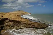 Cabo de la Vela (Spanish for "cape of sails") is a headland in the Guajira Peninsula with an adjacent small fishing village. It is a popular ecotourism destination of the Caribbean Region of Colombia. The cape is surrounded by the La Guajira Desert, several saline lagoons and mudflats visited by large populations of American Flamingos.