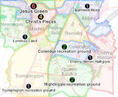 • 🌍 Kelsey Kerridge is the public sports centre on the south side of Parker's Piece. Entry is possible without membership. Next door is the large 🌍 Parkside public swimming pools.