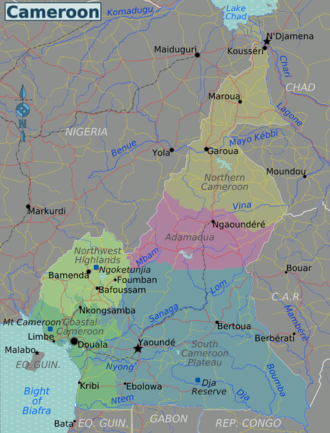 Cameroon (French: Cameroun) is a country in Central Africa. Known as "Africa in miniature", the country is known for its geological, linguistic, artistic, and cultural diversity: some 250 languages are spoken in this mid-sized country. Cameroon was colonised by three European countries — Germany, France, and the United Kingdom.