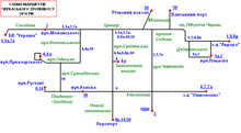 - 🌍 Bus station No.1 (Автовокзал), Krupskaya,(ул. Крупской) 3 (2 km SW), ☏ +380 472 638937. Long-distance transportation is carried out and also minitaxis. Such as the Auto Service 2005 (Сервис Авто 2005) for Kyiv, Belaia Tserkov, Kaniv, Chigirin; the Auto Express (Авто-Экспресс) for Dnipro, Kyiv, Poltava, Kharkiv, Vinnytsia, Kropyvnytskyi, Kremenchuk; the Elite-Express (Элит-Экспресс) for Kharkiv.