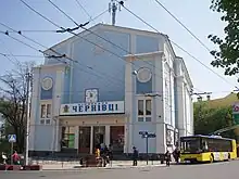 - Music and Drama Theatre. O. Kobylians'ka (Чернівецький академічний обласний український музично-драматичний театр імені Ольги Кобилянської), Teatralna sq., 1.