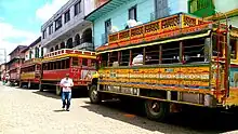 A camioneta is just a bus and that's what locals call their primary mode of transportation. Only tourists (and perhaps locals with much exposure to them) call it a "chicken bus" – a term that may be received as scorn. Whatever the name, an old, often rickety, super cheap bus is the main form of local transport between towns, villages and cities throughout Central America. It is always the cheapest option for travelling for any distance in these countries. Foreign travelers are sometimes shocked that they can travel halfway across a country for the price of bottle of Coke. A chicken bus is usually an old school bus from the USA or Canada which has been brightly painted, often with religious motifs and phrases equating to "Jesus is my driver" and "Jesus protects me", which may justify their use of excessive speed and driving techniques such as overtaking around a blind corner on a narrow road on the top of a hill. A trustworthy chicken bus always has a plastic Jesus stuck to the dashboard. A rosary hanging off a rear-view mirror helps.