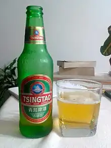 • Beer (啤酒 píjiǔ) is common in China, especially the north. Beer is served in nearly every restaurant and sold in many grocery stores. The typical price is about ¥2.5-4 in a grocery store, ¥4-18 in a restaurant, around ¥10 in an ordinary bar, and ¥20-40 in a fancier bar. Most places outside of major cities serve beer at room temperature, regardless of season, though places that cater to tourists or expatriates have it cold. The most famous brand is Tsingtao (青島 Qīngdǎo) from Qingdao, which was at one point a German concession. Other brands abound and are generally light beers in a pilsner or lager style with 3-4% alcohol. This is comparable to many American beers, but weaker than the 5-6% beers found almost everywhere else. In addition to national brands, most cities will have one or more cheap local beers. Some companies (Tsingtao, Yanjing) also make a dark beer (黑啤酒 hēipíjiǔ). In some regions, beers from other parts of Asia are fairly common and tend to be popular with travellers Filipino San Miguel in Guangdong, Singaporean Tiger in Hainan, and Laotian Beer Lao in Yunnan.