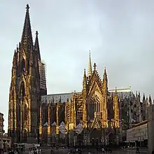 - 🌍 Kölner Dom (Cathedral) (U-Bahn: Dom / Hbf). M-Sa 06:00-19:30 (May-Oct: 06:00-21:00), Su 13:00-16:30. A UNESCO World Heritage site. It took over 630 years to complete this monumental cathedral. In 1880 the cathedral was finally consecrated. Cologne's Dom is the first sight you will notice when taking the main exit from the central station. (If you don't see it, you've taken the back exit.) If you are in good shape, take the 509 stairs to the top of the south tower. It takes about an hour, so wear comfortable shoes, but it's worth the hike. Touring the cathedral is forbidden during Mass. Entry into the cathedral is free but you will be asked for a donation. Admission to the tower costs: €5, reduced: €2, family: €8. Admission to the treasury costs: €6, reduced: €4, family: €12. However, a combined ticket granting you admission to the treasury and tower can be purchased for (regular/reduced/family): €8/€4/€16. No luggage may be carried inside.