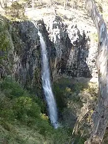 The park features waterfalls that plunge from the plateau on the edge of the Warrumbungle and Liverpool ranges (which are all essentially part of the Great Dividing Range.