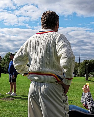 Rival fans mingle amiably inside and outside the stadium, and applaud good play even by the opponents. Dress for comfort and bear in mind that it's a long day out there with changeable weather. Use sun protection even on dull days, a lot of UV gets through the clouds. Both cricket teams wear white and team colours are only worn for short formats, so the fans seldom wear these. A conspicuous minority adopt fancy dress, so you might see a dozen lads all got up as Spiderman or as crocodiles or whatever. The most distinctive tribe is the MCC membership at Lords in their garish "egg & bacon" blazers and similar complexions.