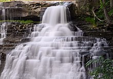 - Mill Creek Falls, Newburgh Heights. 45 ft (14 m) waterfall spawned early lumber and grain mills, vibrant during the Canal Era.