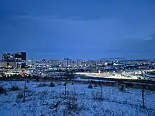 Darkhan is the 3rd largest city in Mongolia with a population of 74,000. The city, which name means "Blacksmith" in Mongolian, was built as a manufacturing base by the Soviets in 1961 on the Trans-Mongolian Railroad. Much of the industrial base collapsed in the early 1990s, and most of its once large Russian population left. Today it is home to a large steel mill, textile industry, and many universities. It has an expansive layout with open steppe and roaming cattle right into the center of the city. The city is divided into a 'new' and 'old' sections separated by some small hills and ger districts spreading out beyond the developed areas. The railroad station, main Buddhist temple, and the black market are in the Old Darkhan, while most of the nicer hotels, restaurants, and shopping centers, along with the universities and cultural centers are in New Darkhan.