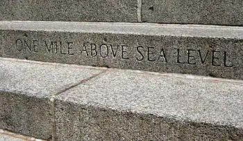 • The 14,271-foot (4,350 m) summit of Mount Blue Sky lies 60 miles (97 km) and 1:45 by car southwest of the Colorado State Capitol.