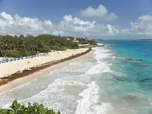In reality the south east coast is one of the most wonderful round-the-year environments and climates for humans thanks to the Trade Winds, which moderate the immense power of the almost perennially overhead mid-day sun, but one of the most destructive for electronic devices, electrical gadgets and other man-made objects due to the salt-laden atmosphere. Many savvy Bajans would not consider living over here for this last reason, so most of the inhabitants are either people who are "still here", or those so wealthy they enjoy the salubrious climate and can afford to replace their possessions very frequently, or the average local Bajan who values his human ambience more than the need for transient gadgets. Visitors should avoid direct exposure to the sun on naked flesh between 11:00 and 15:00 where possible and take advantage of the ample shade and delightful breezes. Don't expose your gadgets to the salty breezes more than you need too or you will be cleaning salt and sand off them some time after you return home.