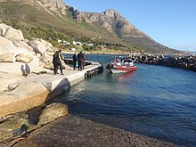 Outside the bay, but influencing the wave patterns in it, is Rocky Bank, an extensive reef of Table Mountain sandstone between 20 and 30 m depth on top, and sloping down to deeper than 100 m to the south.