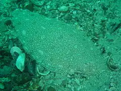 The great majority of popular dive sites in the local waters are on rocky reefs or mixed rocky and sandy bottoms, with a significant number of wrecks, which are equivalent to rocky reefs for classification of habitat, as in general, marine organisms are not particular about the material of the substrate if the texture and strength is suitable and it is not toxic. For many marine organisms the substrate is another type of marine organism, and it is common for several layers to co-exist. Examples of this are red bait pods, which are usually encrusted with sponges, ascidians, bryozoans, anemones, and gastropods, and abalone, which are usually covered by similar seaweeds to those found on the surrounding rocks, usually with a variety of other organisms living on the seaweeds.