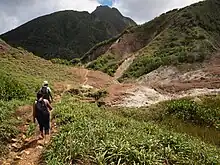 - Glassy — An incredible and short 2-3 hour day hike in the southeast of the island. The trail begins nicely enough through some farm land and then plunges into a deep jungle valley then approaches the coast skirting steep cliffs to one side (not for those with vertigo). The trail ends on an old volcanic flow that juts into the ocean, waves roll all around crashing on all sides, little ponds collect some of the water from the crashing waves and some coral and fish make the ponds their home. When approaching the edges of the cliffs be aware waves have been known to throw people against the rocks or worse yet pulled them into the ocean to their certain death.