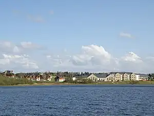 Drumshanbo is a small town in County Leitrim in northwest Ireland: in Irish Droim SeanbhΓ³ means "ridge of the old huts". It's at the south tip of Lough Allen, which almost bisects the county, and is drained by the River Shannon. The area was industrial in the 17th and 18th centuries because of local coal and iron, and became connected to Ireland's waterway network. Those links fell into disrepair in the 19th and 20th centuries but have been restored, so Drumshanbo is now a centre for pleasure boating. Its population in 2016 was about 900.