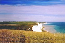 - The South Downs end in chalk cliffs at 🌍 Beachy Head along the coast.