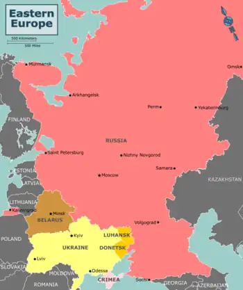 The term Eastern Europe can defined in several different ways; see the understand section below for discussion. This article uses a fairly narrow definition, covering only Belarus, Russia and Ukraine.