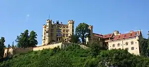 • 🌍 Hohenschwangau (Bus Nr. 73 or Bus Nr. 78 from Füssen. Horse carriage from the Ticket-Center: uphill €4, downhill €2.), +49 83 62 - 93 08 30, fax: +49 83 62 - 93 08 320. Ticket sale times: Apr-Sep 09:00-17:30, Oct-Mar 10:00-15:30, closed on 24 Dec. The castle directly across from Ludwig II's fairy-tale castle. This castle served as Ludwig II's home while he was growing up. The ticket office closes half an hour before the castle does. Make sure to sit behind the driver while on the bus to the castles. You must buy the ticket in Ticket-Center Hohenschwangau, Alpseestraße 12. Admission: adults €12, students, seniors (over 65) and groups (15 people or more) €11 per person, children under 18 free. Combination ticket „Königsticket“ for Neuschwanstein Castle and Hohenschwangau Castle on the same day: €23 or €21 concession.