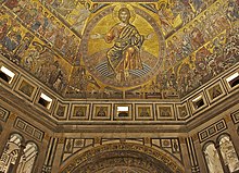 - 🌍 Baptistery. M-F 08:15-10:15 & 11:15-19:30, Sa 08:15-18:30, Su 08:15-13:30. Octagonal plan, with a pyramidal roof covering its dome. It's famous for its bronze doors by Andrea Pisano (14th century) and Lorenzo Ghiberti (15th century) and a beautiful interior vault decorated with 13th-century mosaics. The interior is being restored and is unviewable as of April 2024, though the exterior can be seen. By ticket.