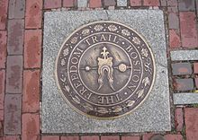 Over the years the Freedom Trail has expanded and evolved. Today it extends from Boston Common to the Charlestown Navy yard and is marked by a line of contrasting bricks, red paint, and distinctive signage. More than 1.5 million people walk the trail every year, discovering the Revolutionary past embedded in a major modern urban environment.