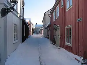 Gävle town is first documented in 1413 and received its charter in 1446, as Norrland's first and only city during the Middle Ages. Its harbour was first a fishing port, then an industrial dock and so remains; it's not a ferry port. The fortress resisted a Russian invasion in 1719, and Gävle has been spared combat since, with an army base just in case. But its wooden houses burned merrily enough without foreign assault, and after the last great fire in 1869 the area north of the river was re-built in stone on a grid pattern. South side was relatively spared so this is where you find the oldest part of town.
