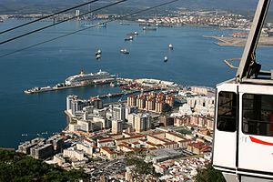 Gibraltar receives a large number of visits from cruise ships, and the strait of Gibraltar is one of the busiest shipping lanes in the world. Over 200 cruise ships call each year on the Port of Gibraltar with a passenger total approaching 350,000. The cruise port is at the western end of Waterport Road, about 1.3 km from Casemates Square and Main St. A port call is one of the easiest ways to get in to visit Gibraltar, especially given the occasional delays at the land border crossing with Spain.