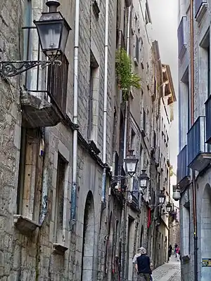Girona is the chief city of Província de Girona in Catalonia, northeast Spain. In Castilian Spanish it's called Gerona, but this page uses Catalan spellings. In 2023 the city had a population of 104,320, with about another 50,000 in the adjoining town of Salt.