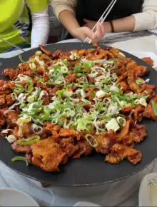 - 🌍 Wang-chang-I (왕창이), Wangchangi Restaurant on 1F, 624, Geogyu-ro, Geogyu-myeon, ☏ +82 507-1487-7377. Closed on Wednesdays, from 11:00 to 21:00 on other days. Enjoy the taste of gochujang bulgogi from a famous family that has been running since the mid-1990s. You can enjoy the taste and cost-effectiveness at the same time. Hot red pepper paste bulgogi set cooked with briquettes: ₩12,000.